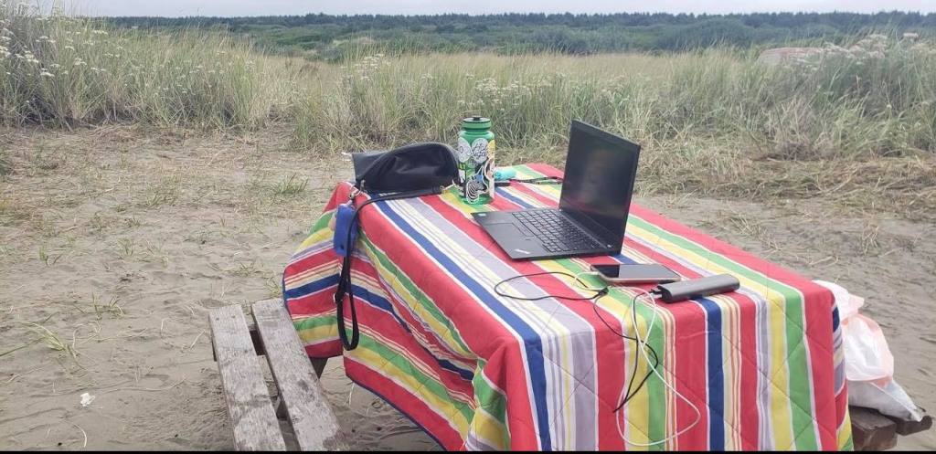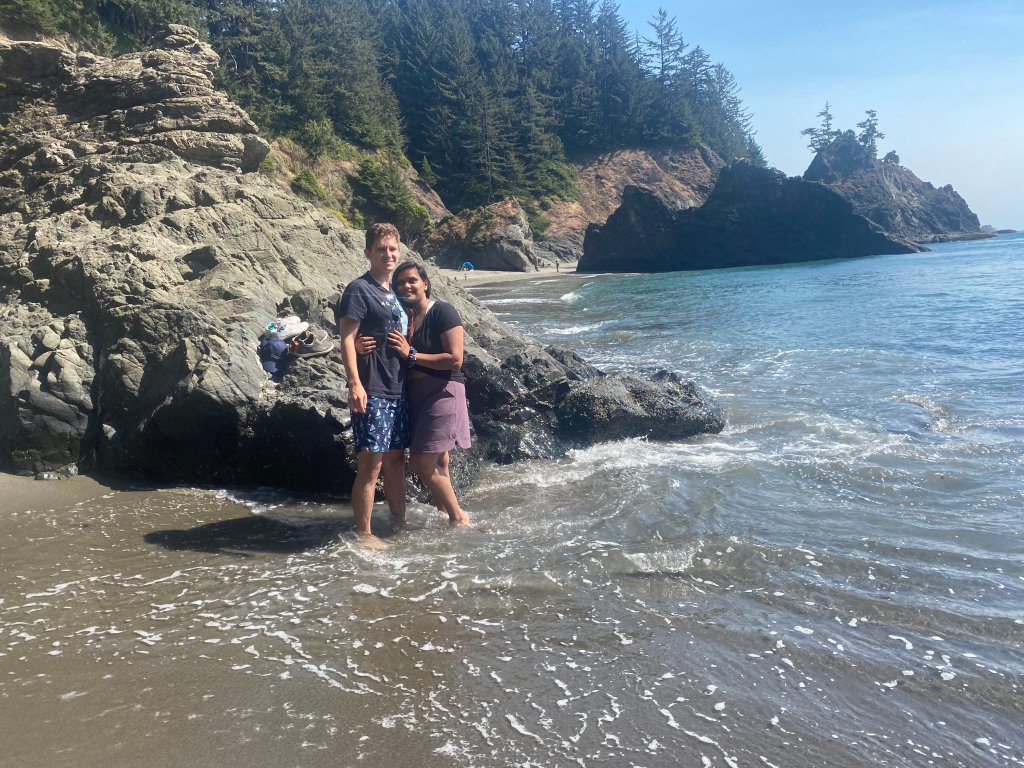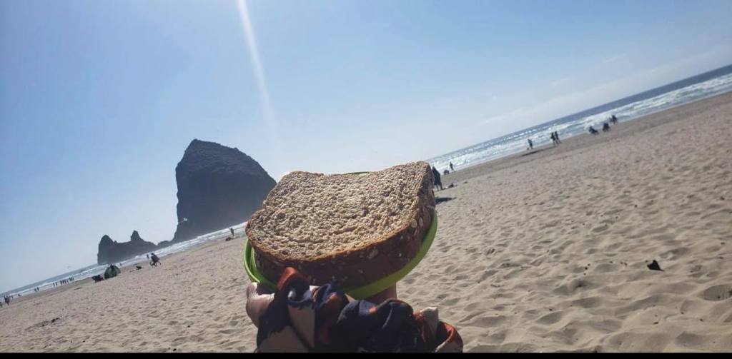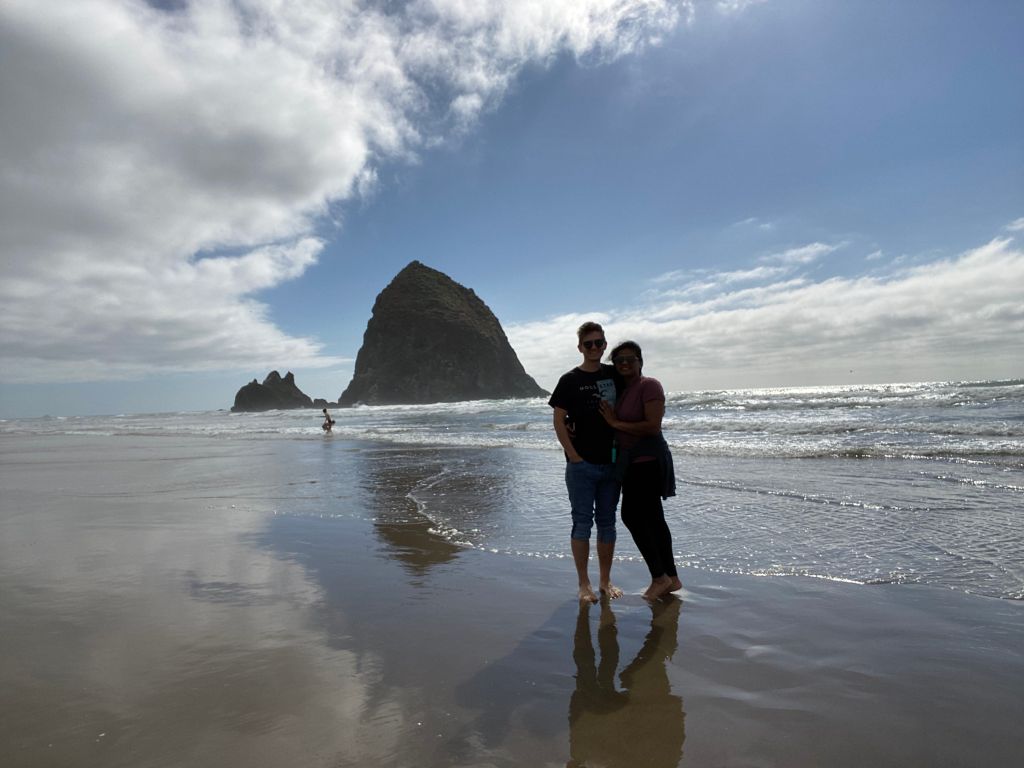 Next day was very interesting because the morning was a bit gloomy and chilly. Sans had to do her internship presentation while we were at the site. So while Sans was presenting, Kacper was cleaning up and packing so we were ready to head out. Our stop for the day was Canon Beach (128miles). We highly recommend this iconic site! We had a small picnic on the beach under the sun, and Sans accidently took a very LONG nap. It worked out in our favor because we avoided the harsh sun. Kacper went in for a swim (not a good idea-cuz it was very cold) and we just walked down the beach and took in the fresh air.