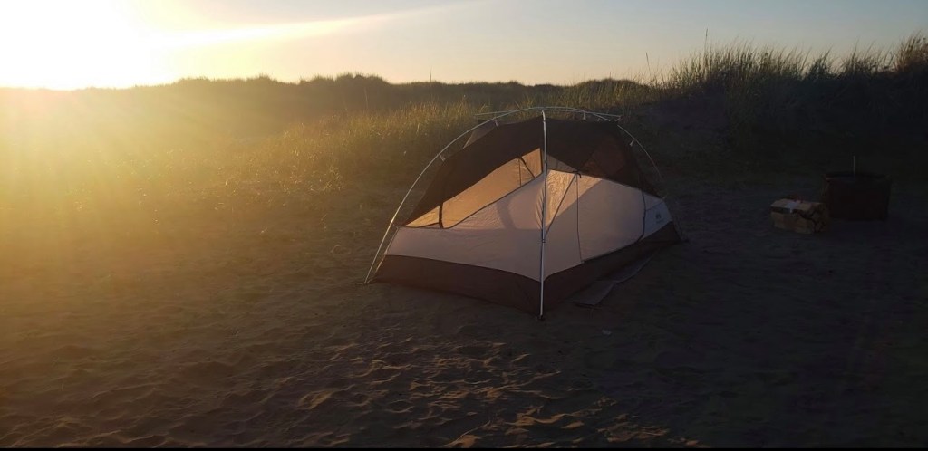 We left Seattle around 1pm, but stopped at Costco for some food and gas. The drive to the Ocean Shores (except the Tacoma traffic) was very calm and fun. It was around 6pm when we got to Ocean Shores. We didn’t know this, but when we got to the beach we saw all these cars driving on the SAND! It was Sans first time driving on sand – which was pretty cool. Now for the coolest part – our campsite! If you want a private beach access and view campsite at Ocean Shores, book your spot at JB’s RV Park and Campground. The host is the nicest person and super accommodating. The night was super cold and windy – so windy that we couldn’t get our fire-pit started. So bring extra layers. But the night was so peaceful and calm, you could hear the ocean waves throughout the night and even in the morning.