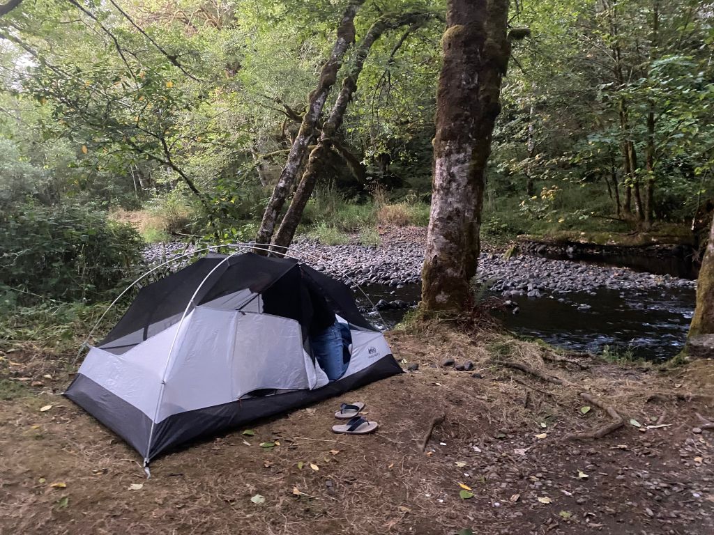 Left from Canon Beach and started driving to the Tillamook Creamery. We didn’t have a reservation, so we were kind of winging it. As we started getting closer to Tillamook, Sans started calling campsites to check availability and found one! The campground is called Camper Cove RV & Campground. It is a little (15mins) far from the creamery, but it was the prettiest site right next to a creek and super private as well. However by the time we did get here, it was starting to get dark, so we saw most of the site in the morning 😉