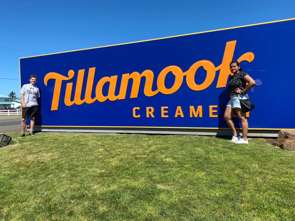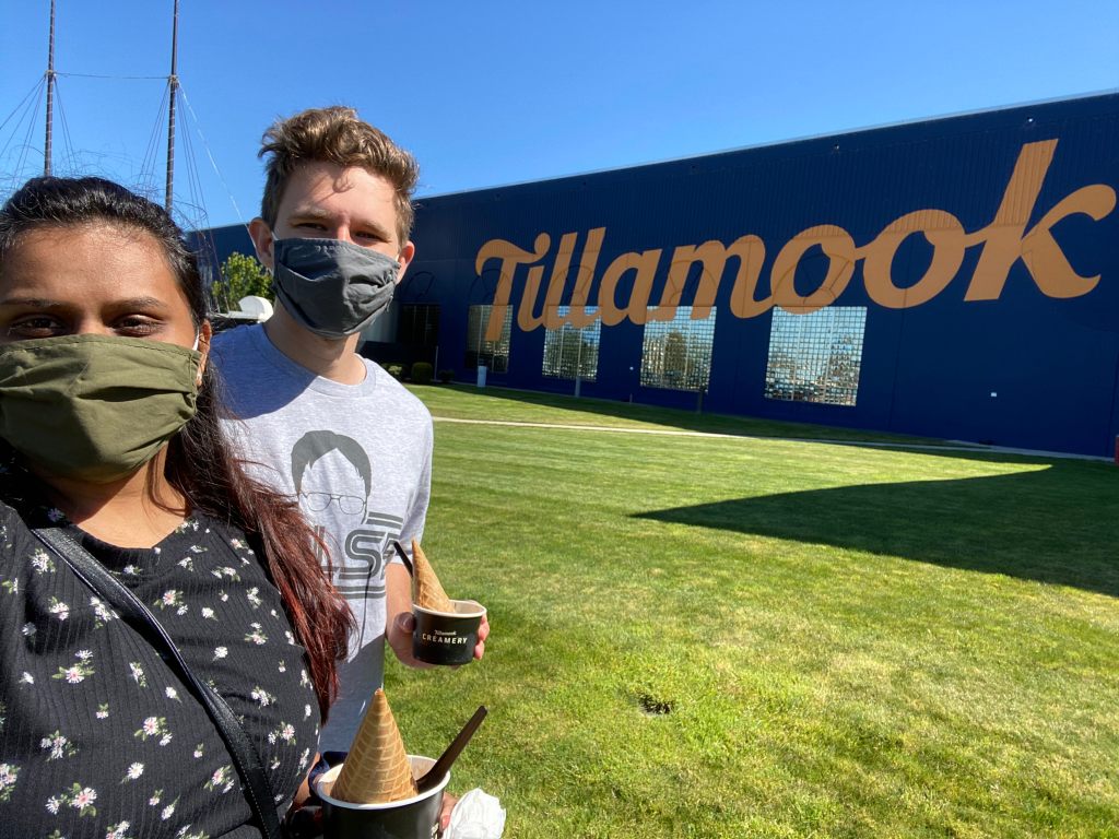 This day had a sad start – We finally had network so Sans checked her email and had her OPT rejected due to an electronic signature (lame, right?). So she was a bit sad that day, but she put on a smile and decided to continue with our trip as planned. Our first stop was Tillamook Creamery (unfortunately you had to reserve a spot due to COVID – and of course we didn’t realize to check earlier). Didn’t get a chance to go in, but we got some BOMB lunch from there – including ICECREAM!