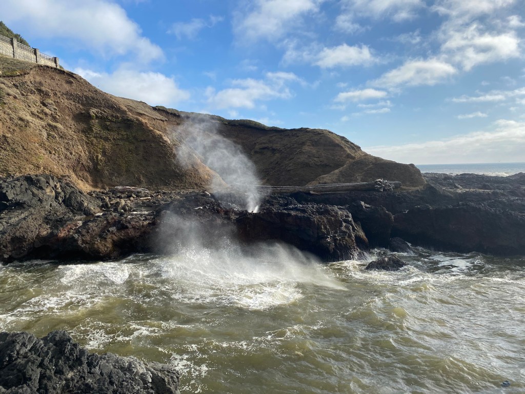 Next stop was the Thor’s Well (35.2 miles). Sans is a Marvel’s fan so of course we had to check this out. Surprisingly there were a few people without masks – so we were a little cautious. There is a small cute hike to the Thor’s well up from the road where we parked. Be careful – it gets extremely cold and windy. We surprisingly spent like 3hrs here, because its so mesmerizing.